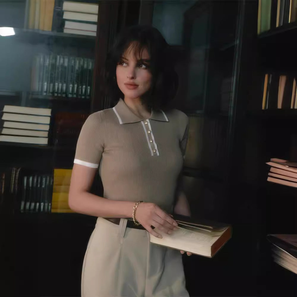 Elevate Your Wardrobe with our Button-Trim Knit Blouse. This stylish piece seamlessly combines sophistication and comfort, featuring unique button detailing for a classic touch. The crisp collar and sleeve trim provide a polished finish, making it a versatile addition to your chic everyday wear.