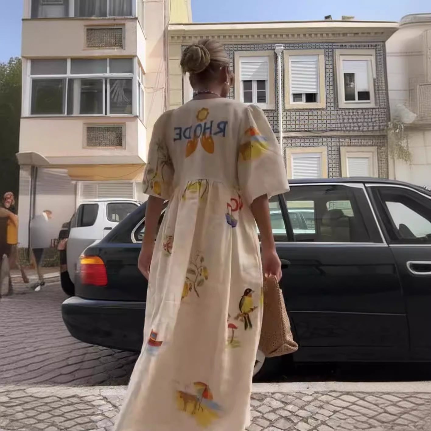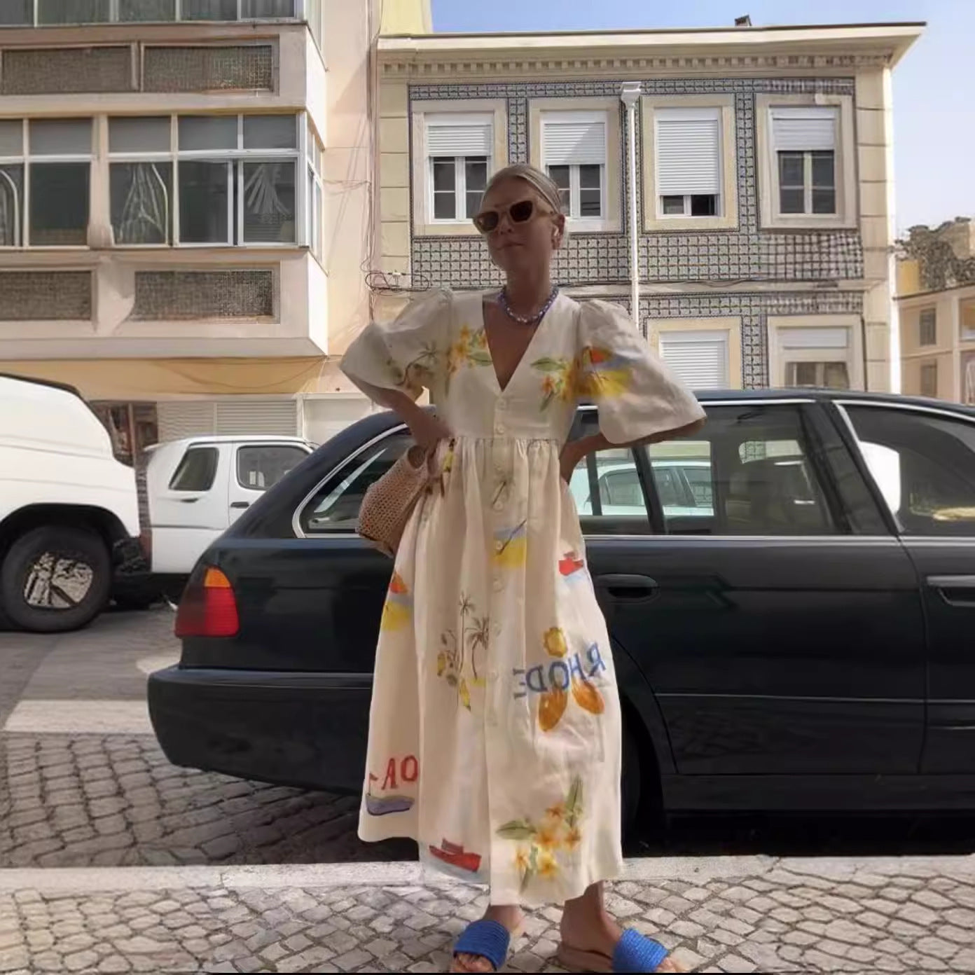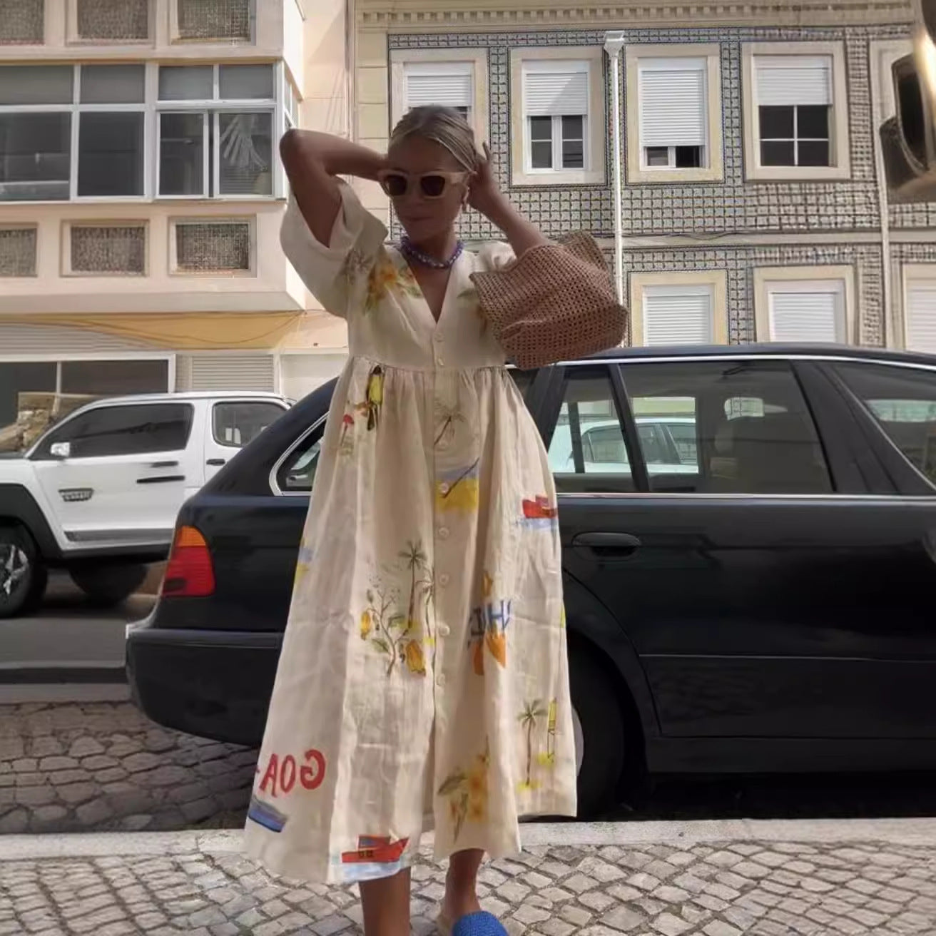 Introducing the Emma's™ - Beach Dress, where style meets comfort. With its relaxed five-point puff sleeves and loose fit, this dress is perfect for holidays, exuding simple elegance for both beach days and evening outings. You'll feel instantly chic and comfortable!